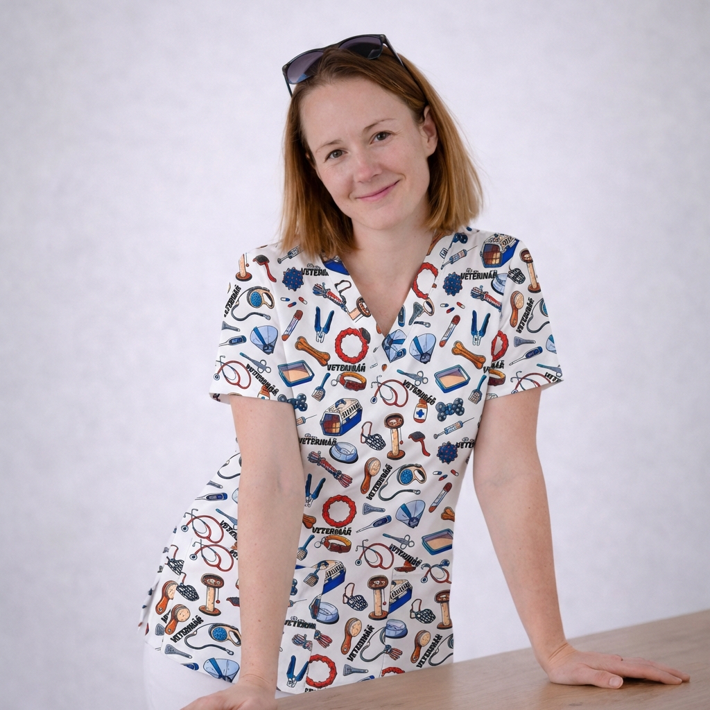 Halenky v několika střizích s veselými vzory pro veterinální obory.