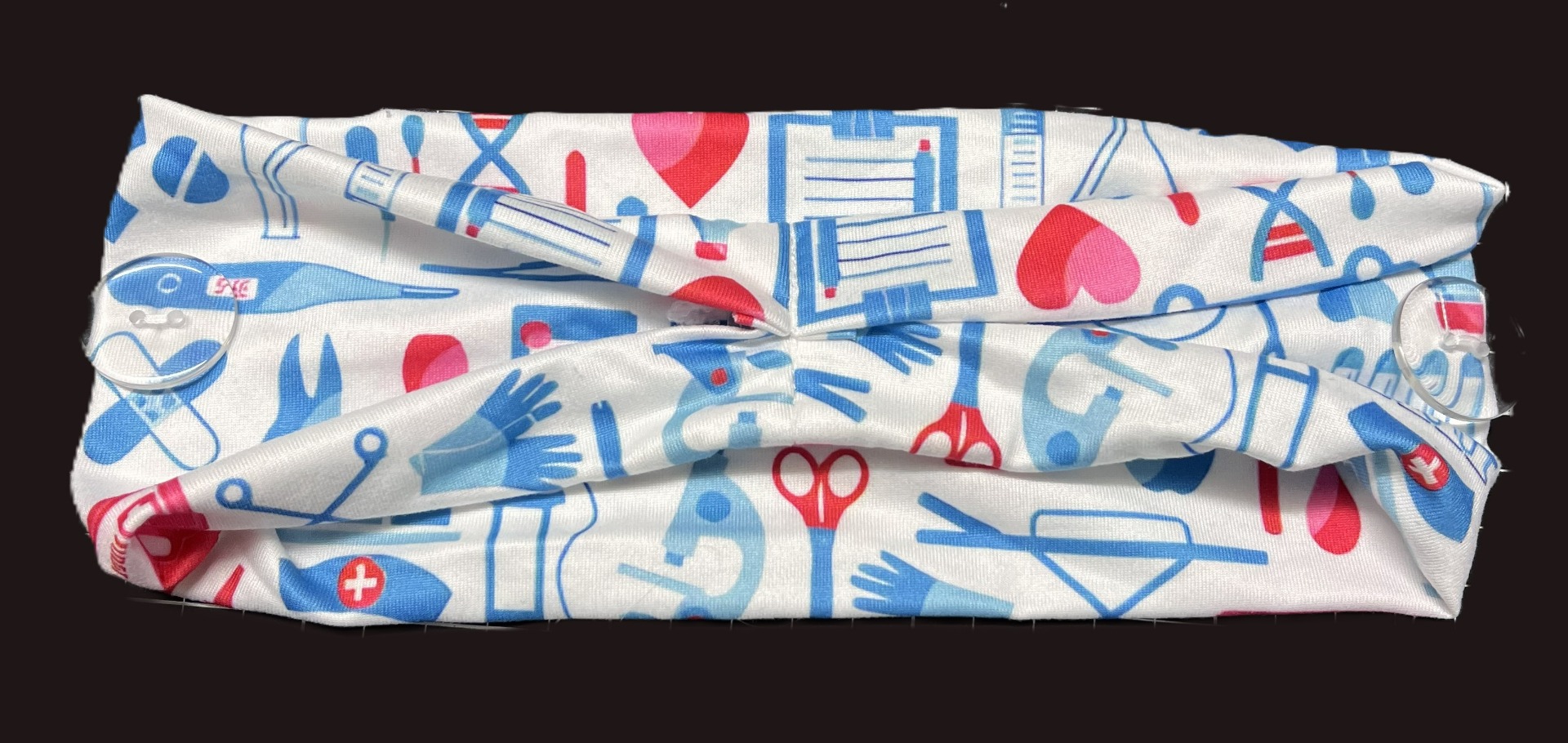 Krásná čelenka do vlasů s překřížením se vzorem pro zdravotníky.