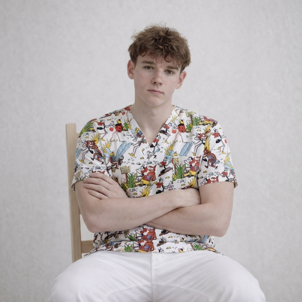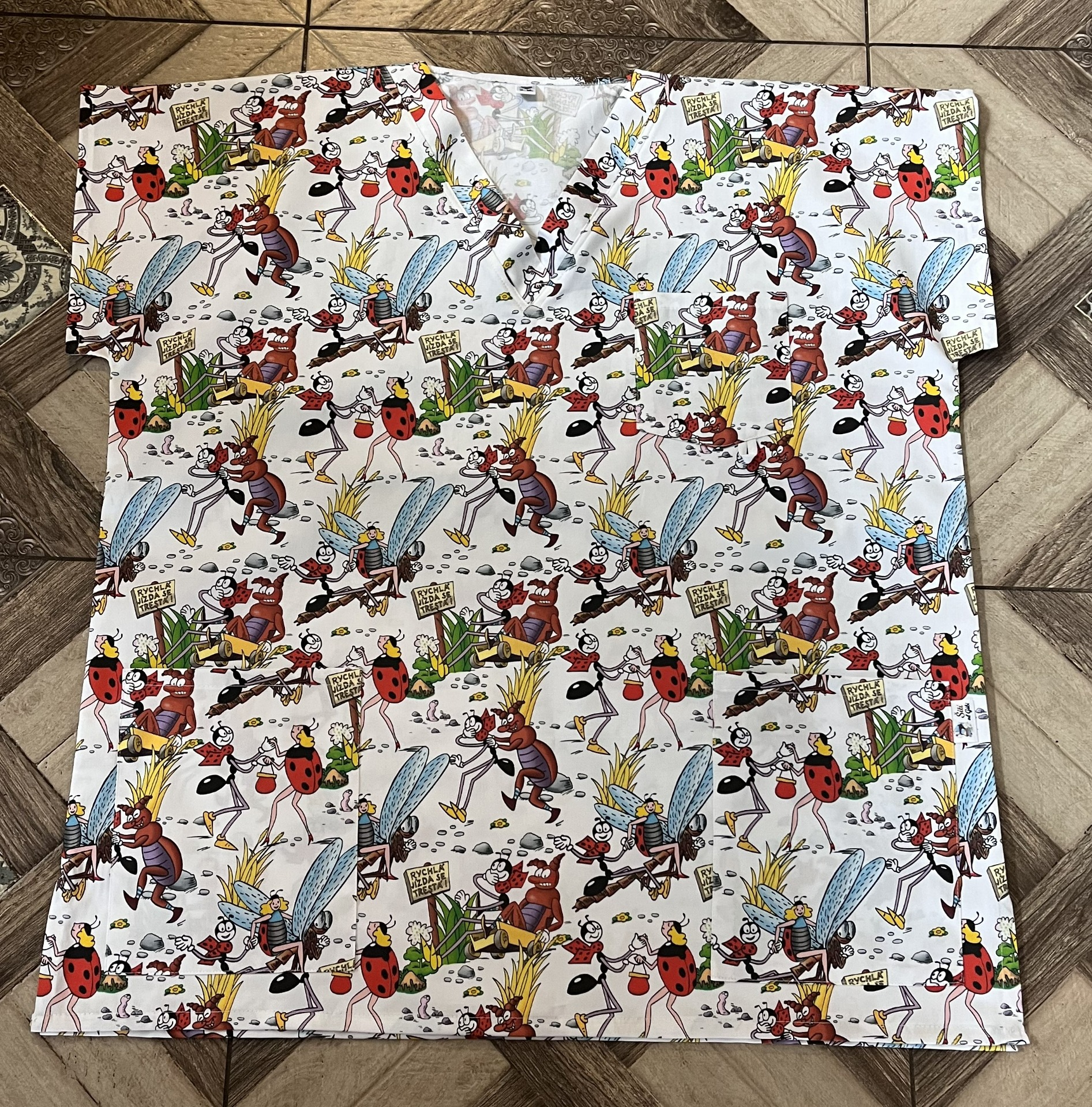 Zdravotnická halena pro pány s různými vzory pohádkové postavičky Ferdy a jeho kamarádů