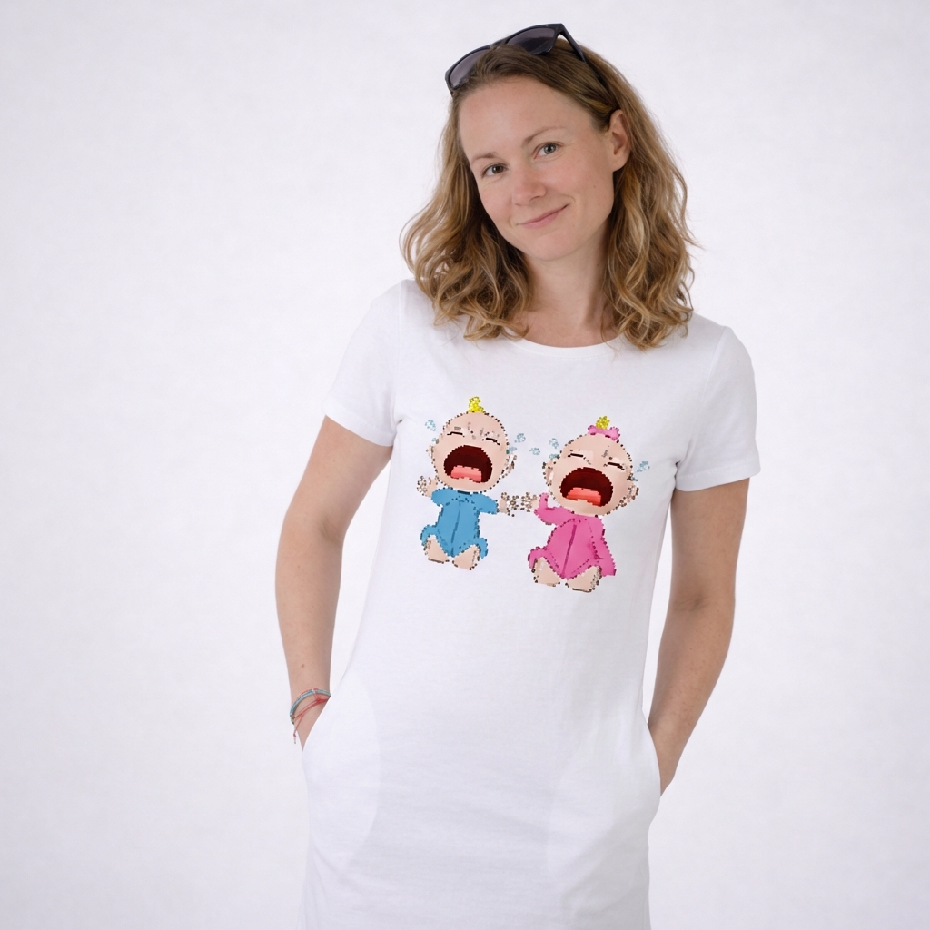 - Vzor lze vytvořit jako panel - obrázek pouze na hrudi, nebo jako potištěný na celé šaty