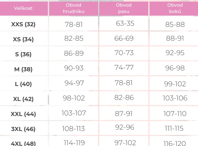Ve velikostech XXS až 4XL