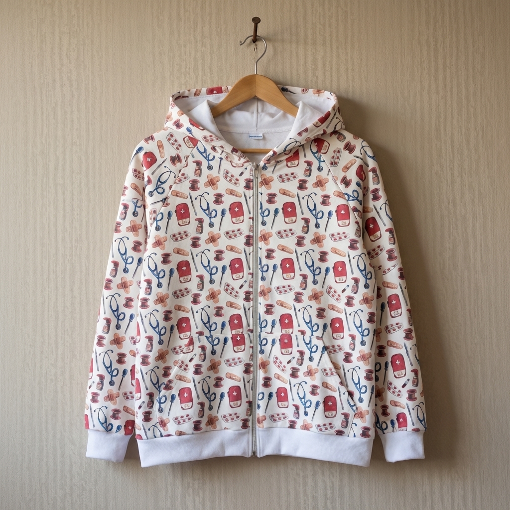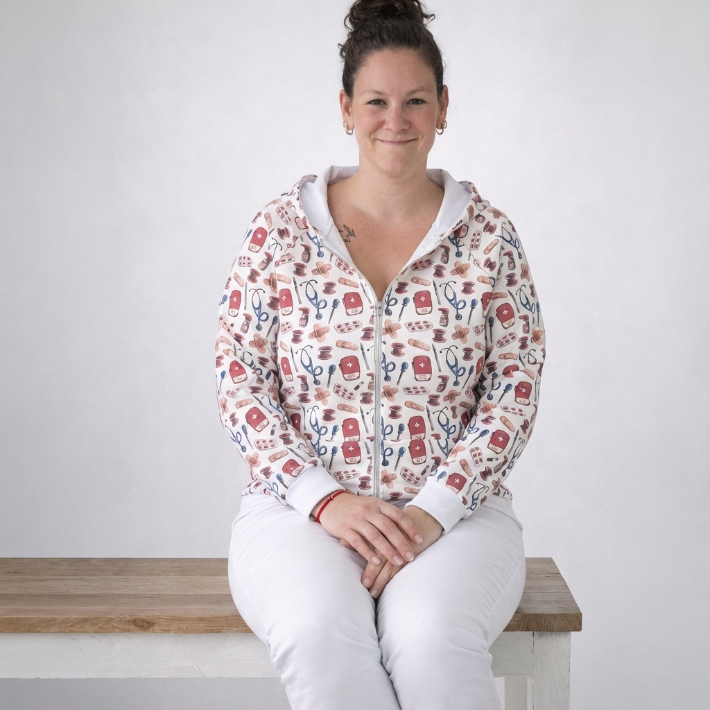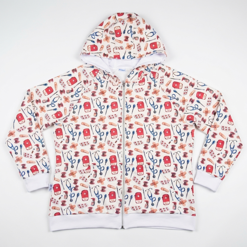 Dámská mikina na zip s kapucí se zdravotnickým vzorem
