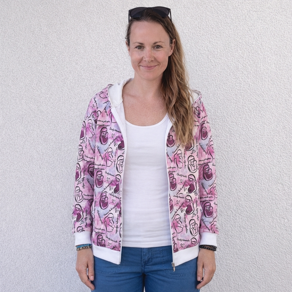 Dámská mikina na zip s kapucí s oblíbeným vzorem