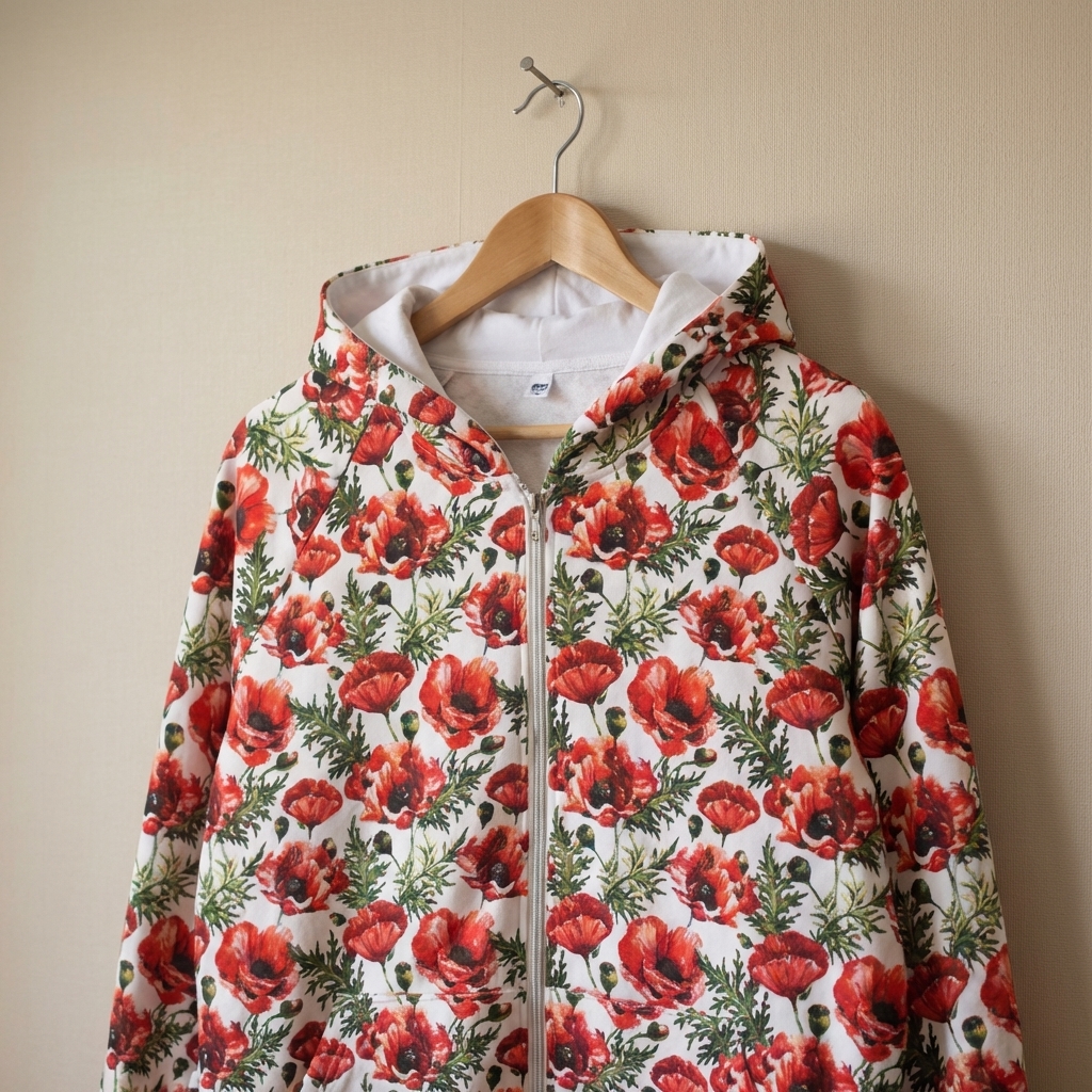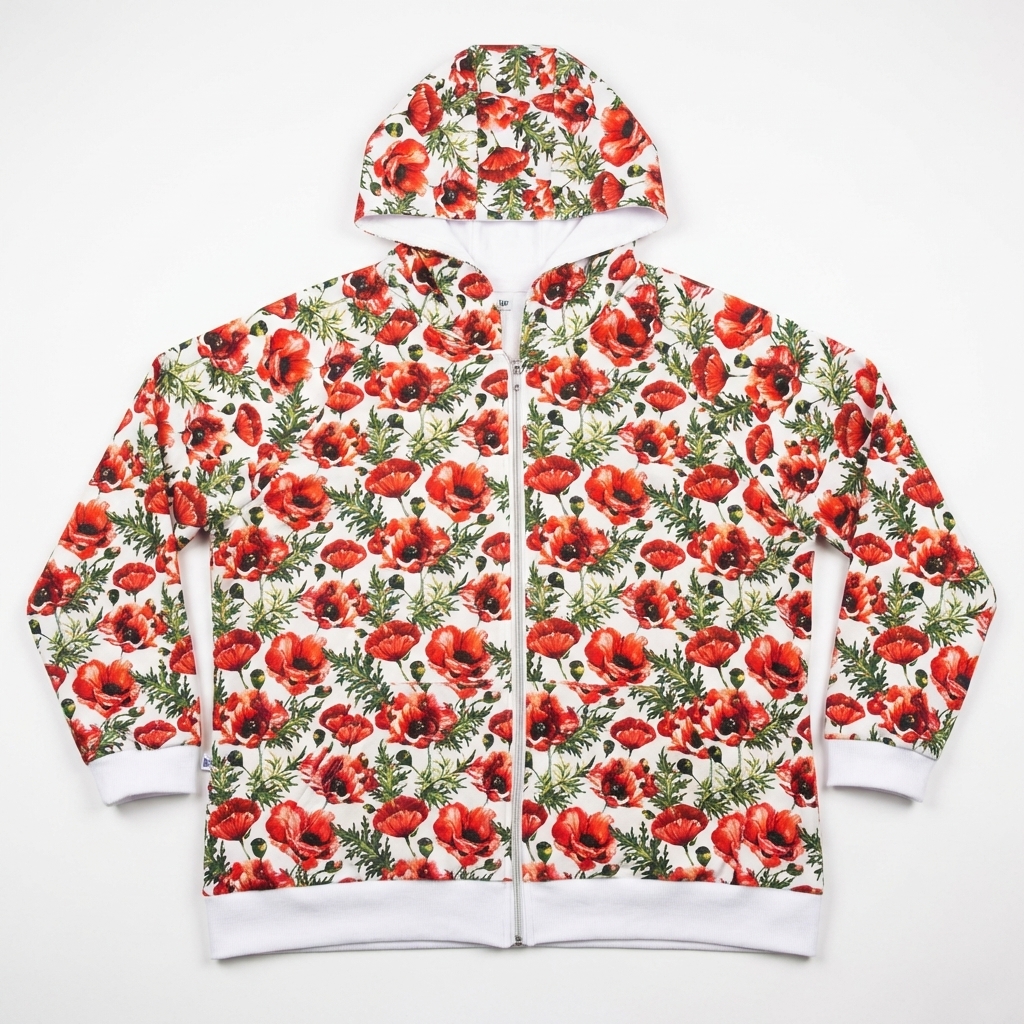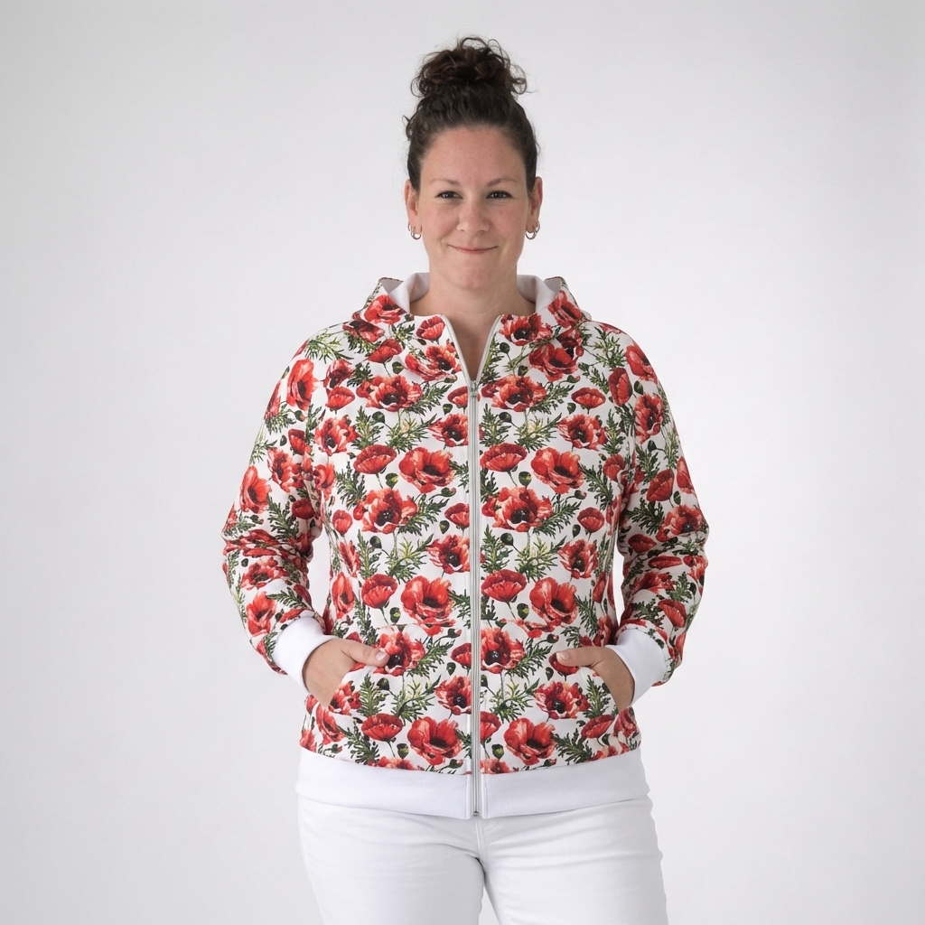 Dámská mikina na zip s kapucí se širokou paletou okouzlujících máků