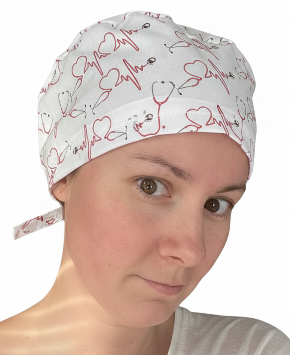 - Operační čepice z bavlněného saténu s kapkou polyesteru pro vzdušnost, zajišťuje pohodlí a prodyšnost i během nejnáročnějších operací.