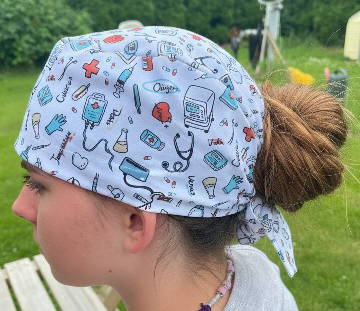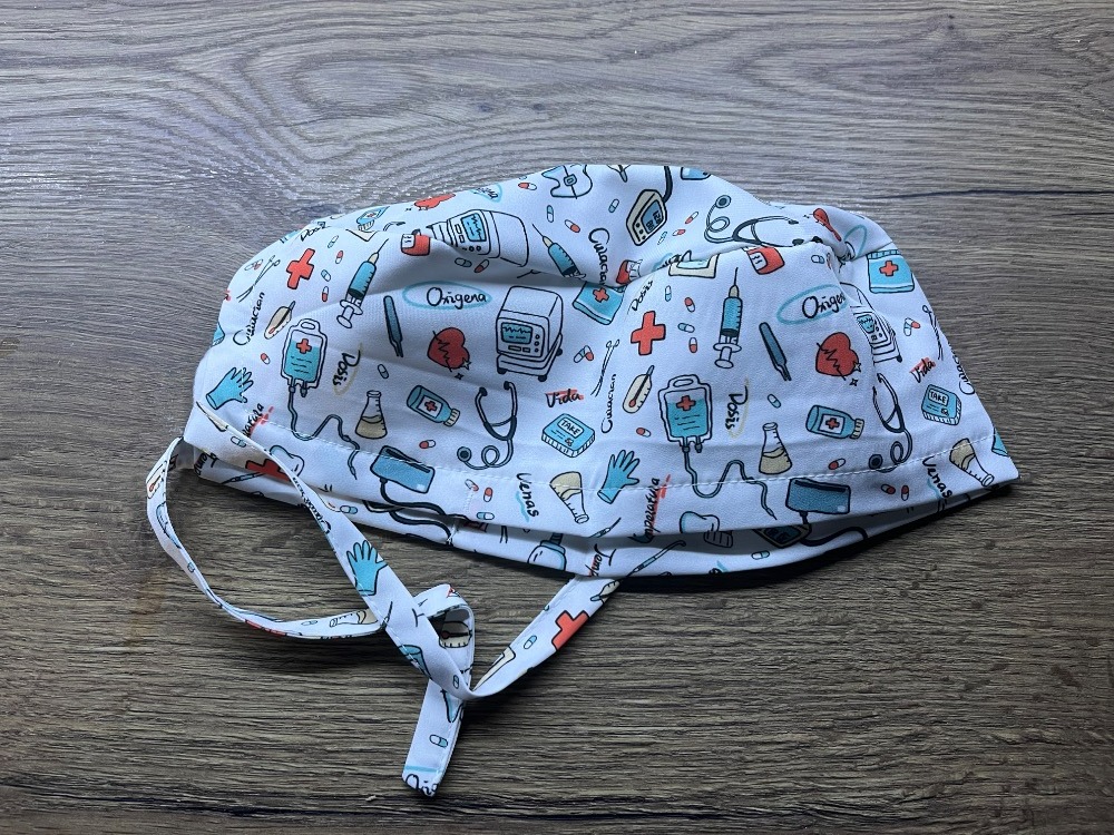 - Operační čepice z bavlněného saténu s kapkou polyesteru pro vzdušnost, zajišťuje pohodlí a prodyšnost i během nejnáročnějších operací.