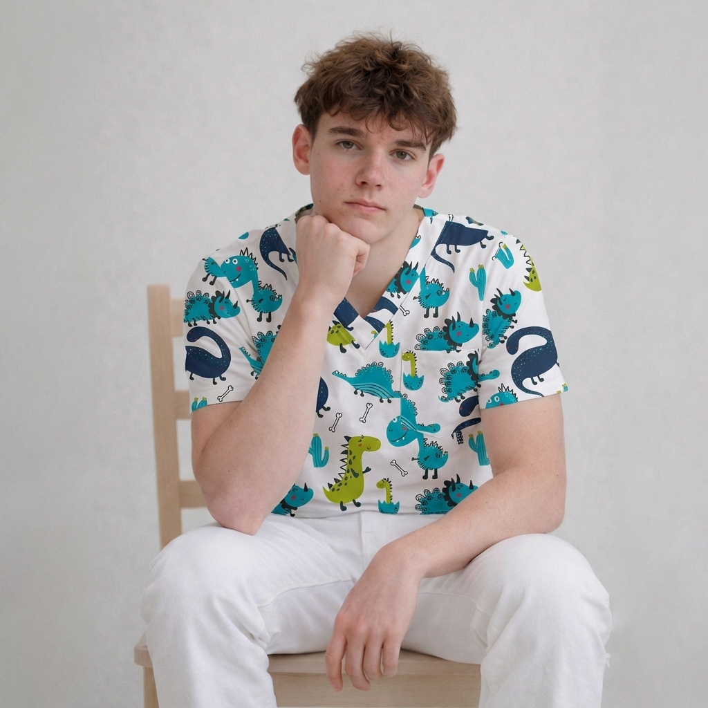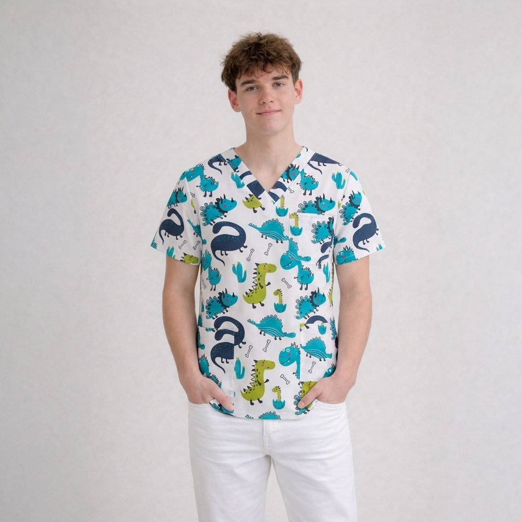 Zdravotnická halena pro pány s různými vzory dinosaurů