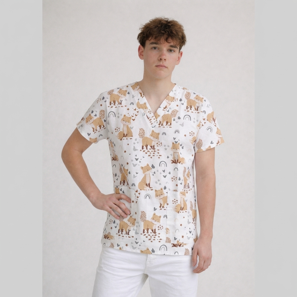 Zdravotnická halena pro pány s různými vzory roztomilých a veselých lišek