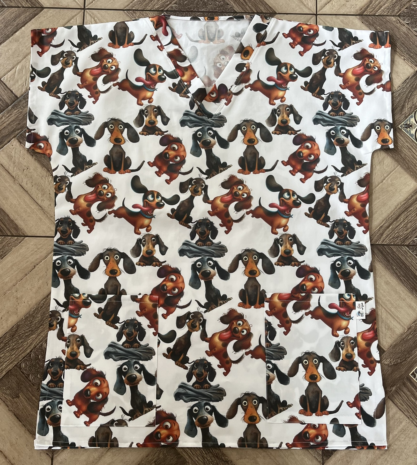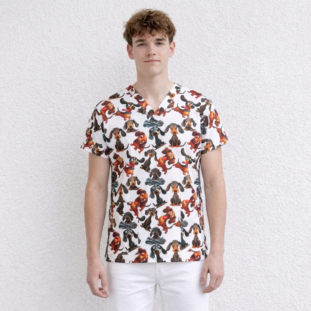 Zdravotnická halena pro pány s různými vzory jezevčíků