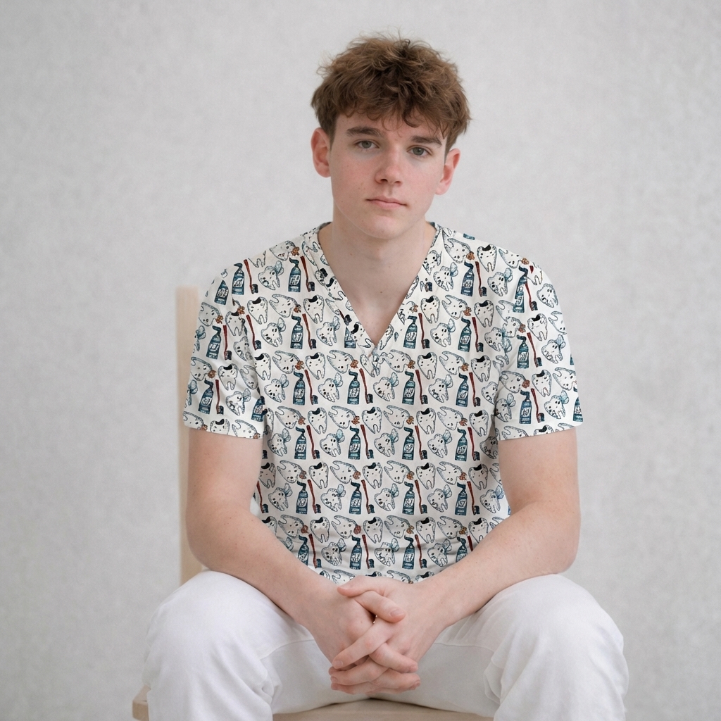 Zdravotnická halena pro pány s různými vzory zubů pro pány zubaře