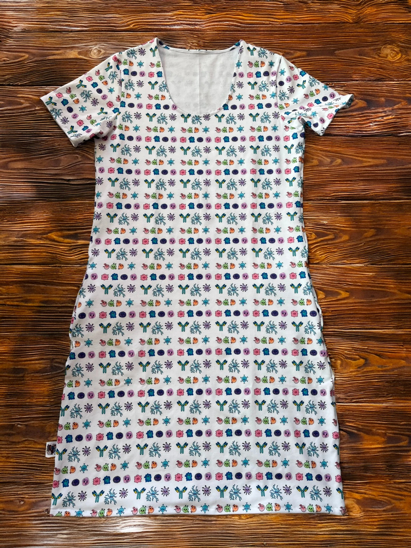 úpletové šaty s veselými vzory do laboratoře