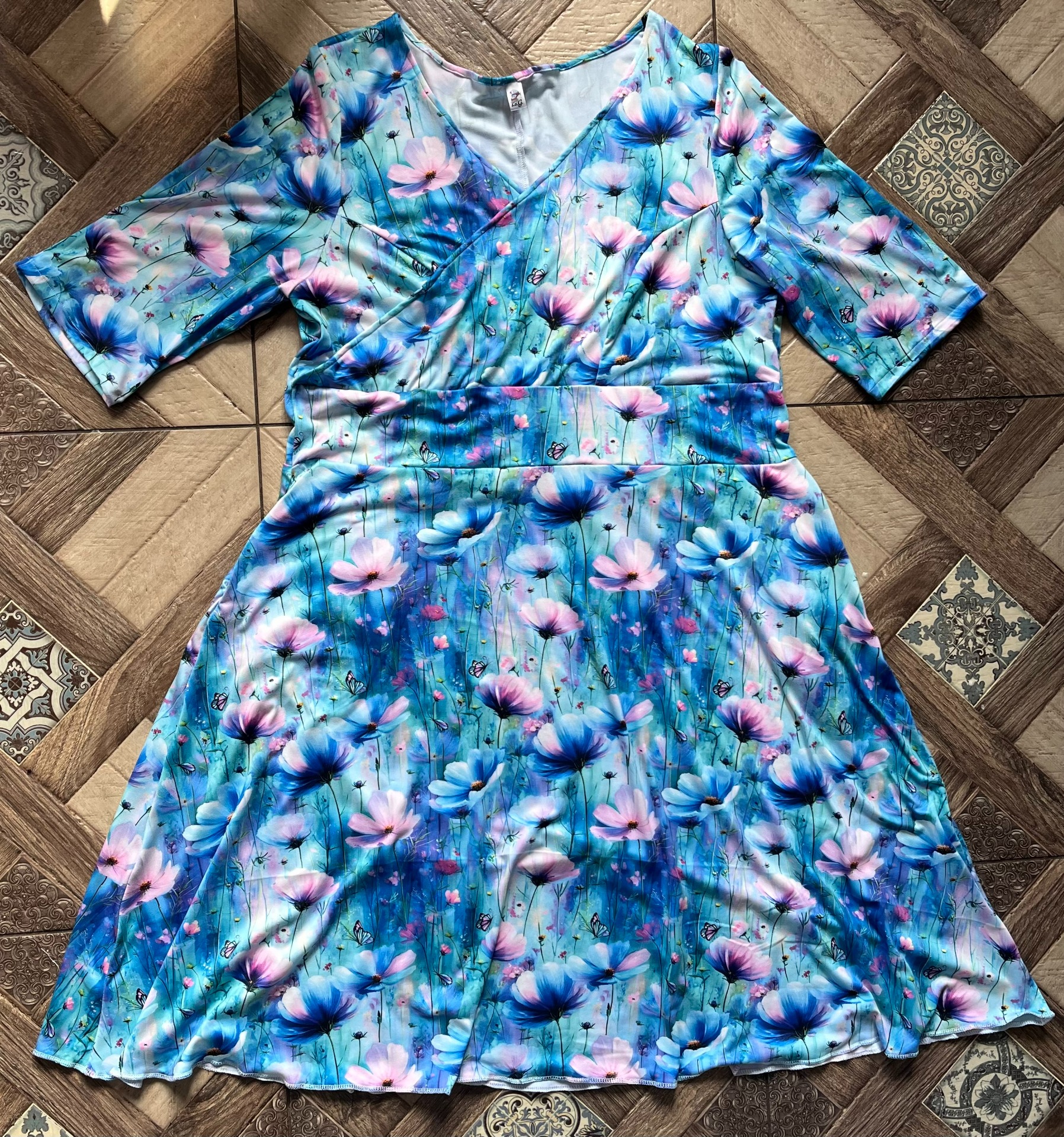 Krásný elegantní střih s překříženým vrškem a 3/4 rulávy ( na přání lze vytvořit i variantu s dlouhým nebo krátkým rukávem - stačí pouze vepsat do poznámky)