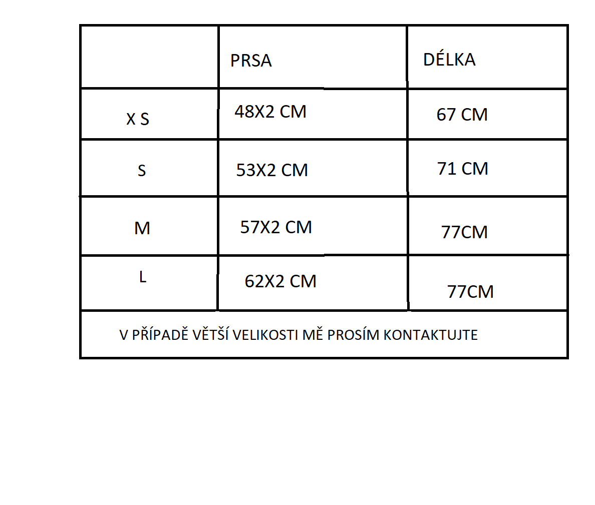 • Ve velikosti XS - L ( tabulka velikostí v galerii) - v případě větších či jiných rozměrů mě kontaktujte