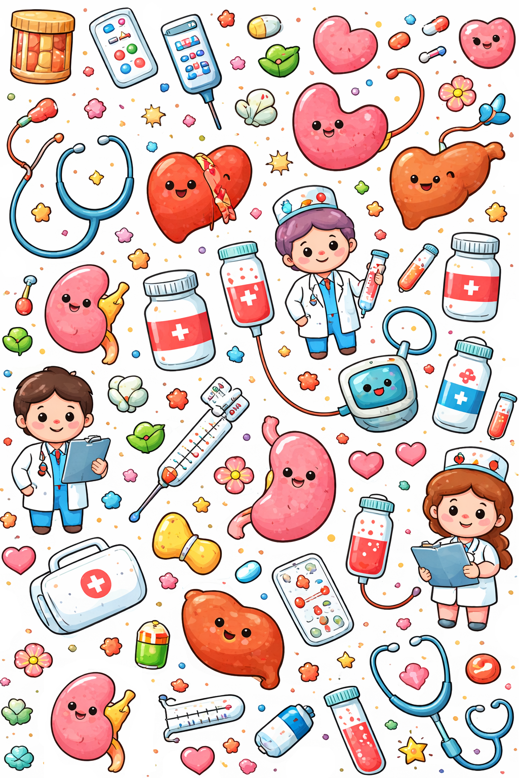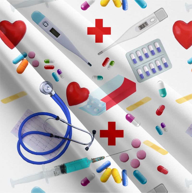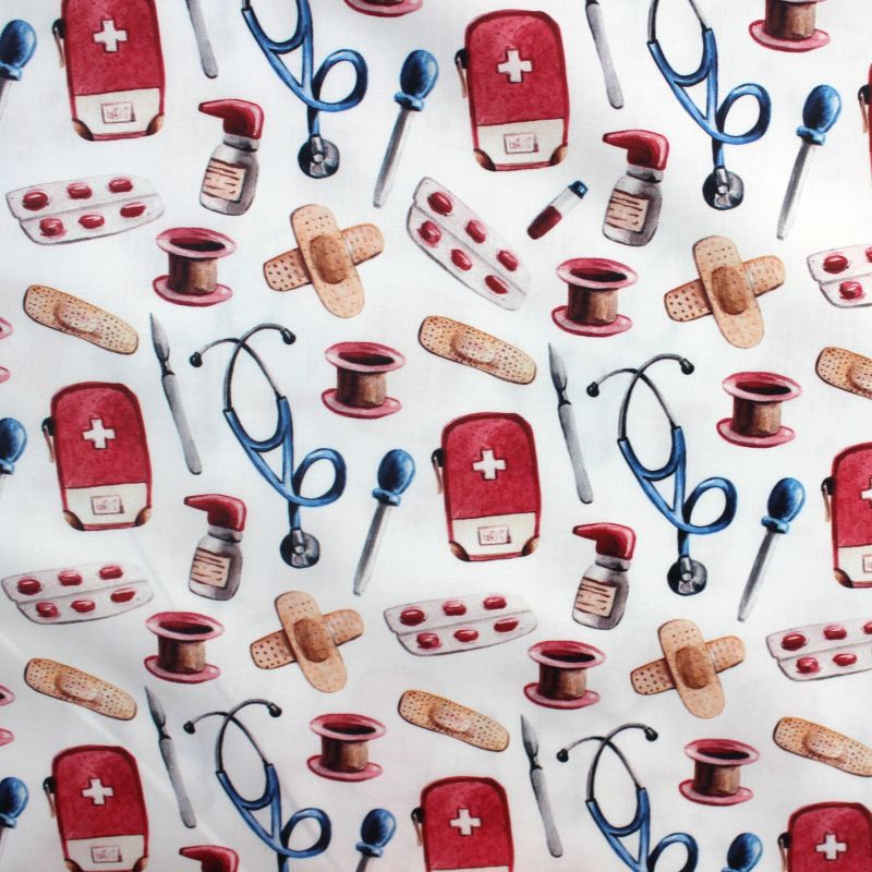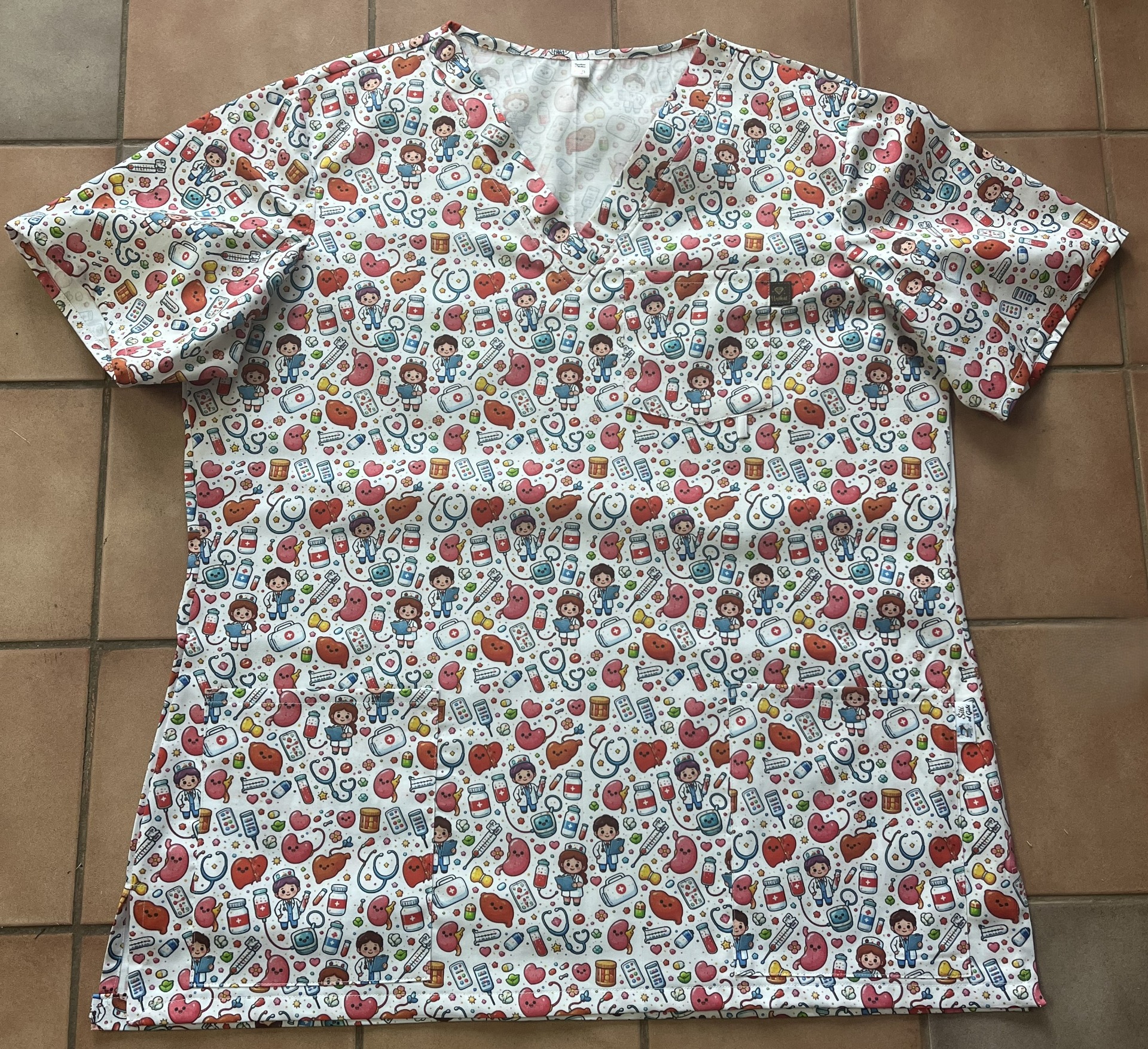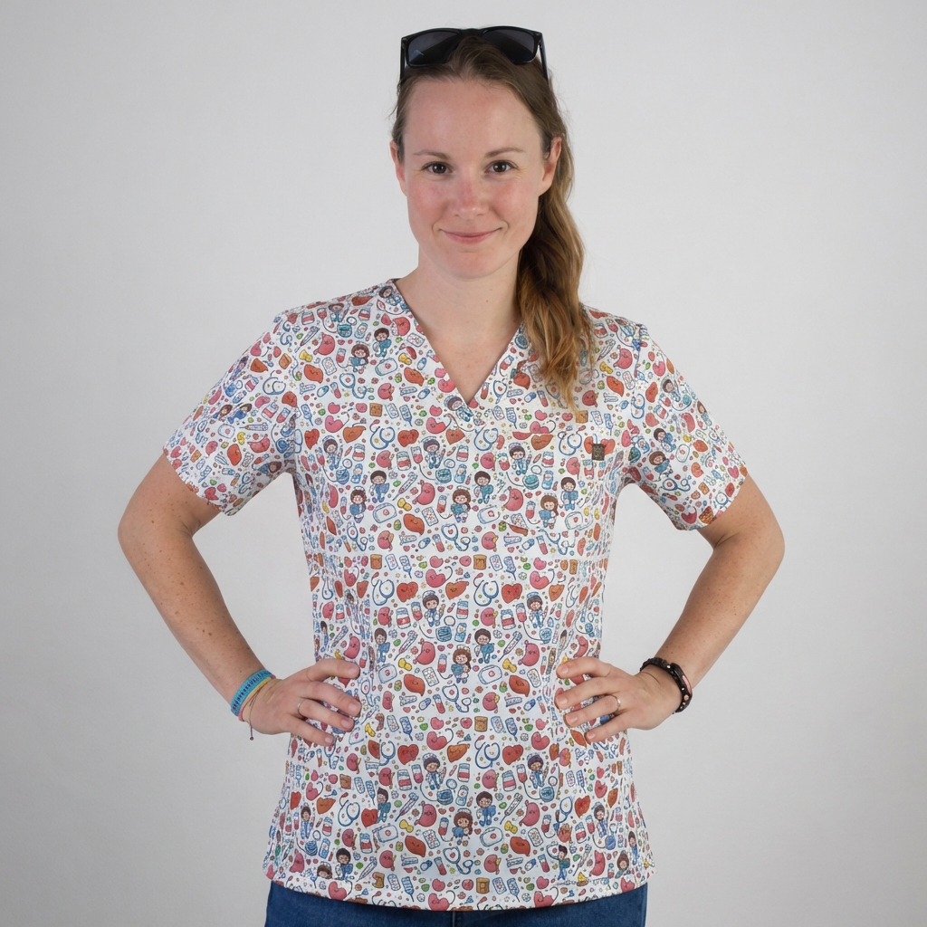 Zdravotnická halenka s různými motivy vhodnámi na oddělení kardiologie a interny pro hezčí pracovná den