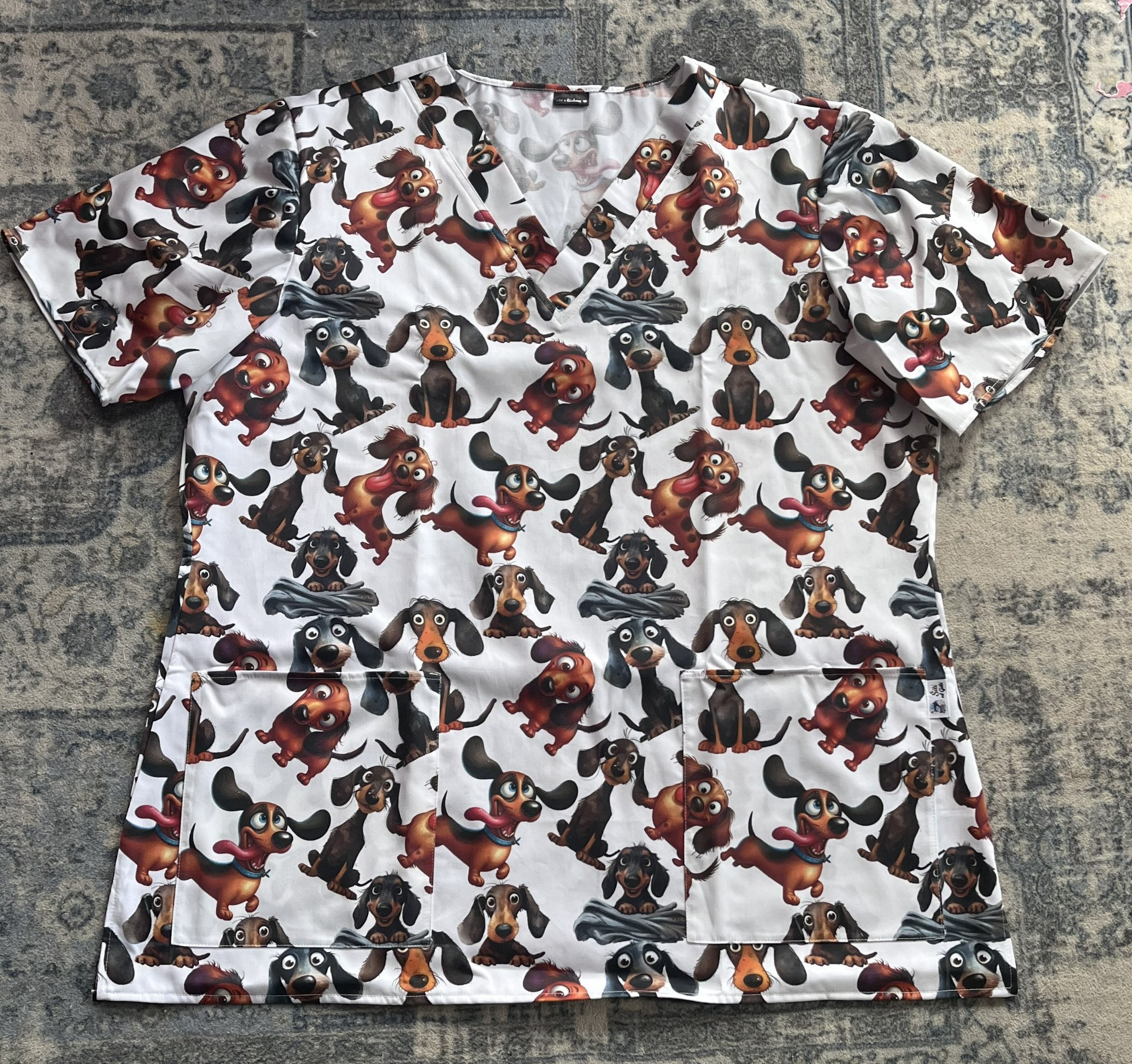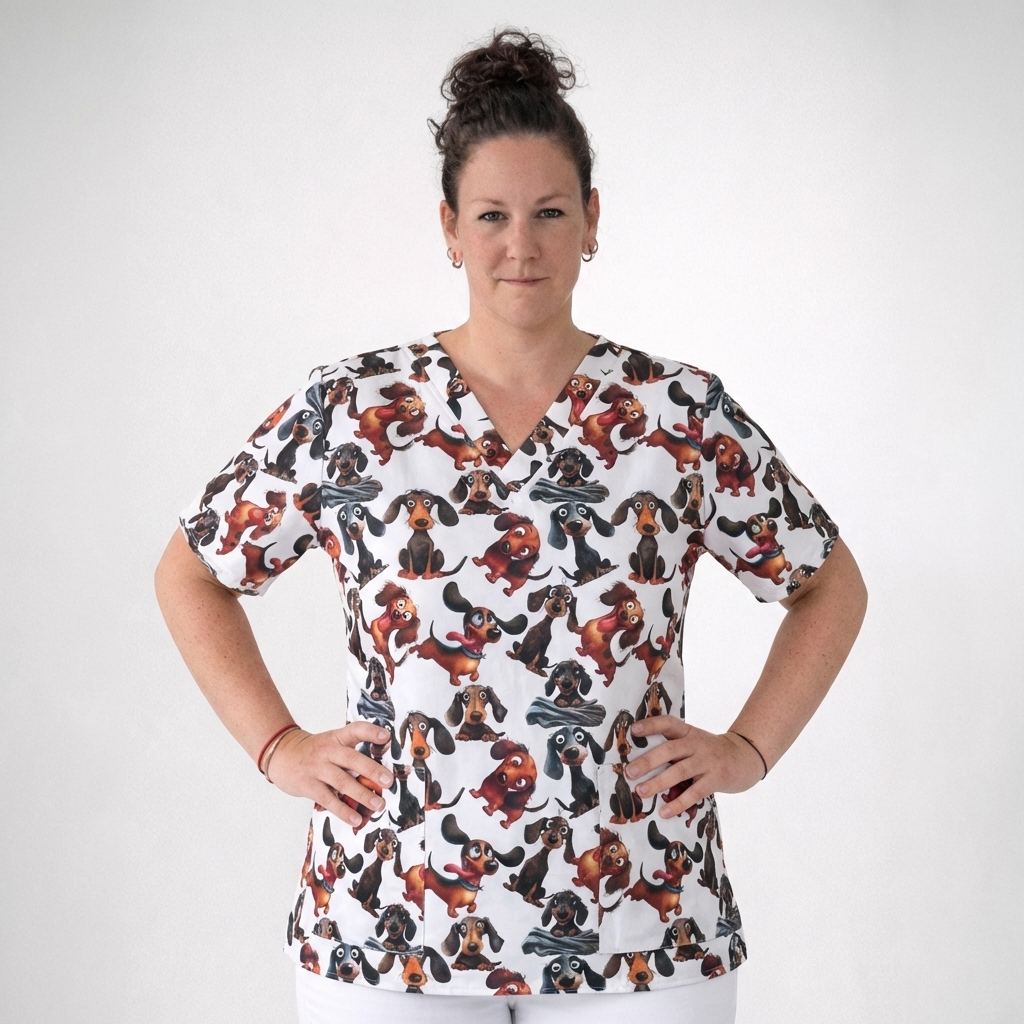 Zdravotnická halenka s roztomilými vzory jezevčíků