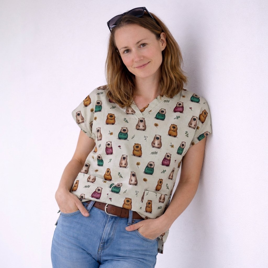 Objevte kouzlo zdravotnické haleny s motivy populárních kapybar a to hned ve dvou variantách střihu.