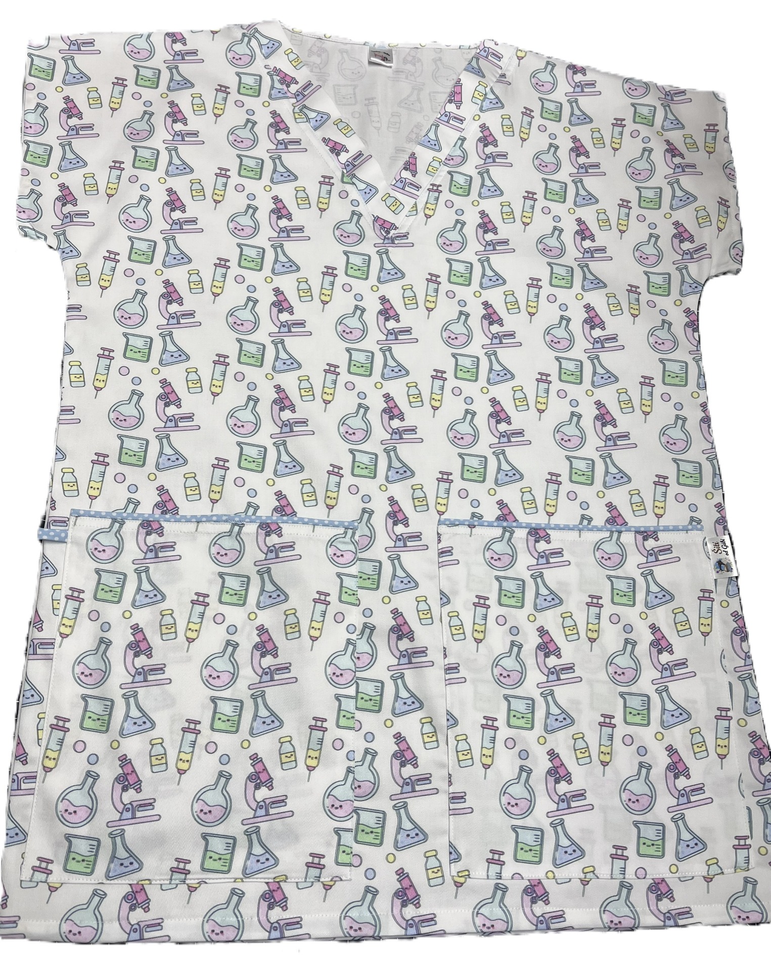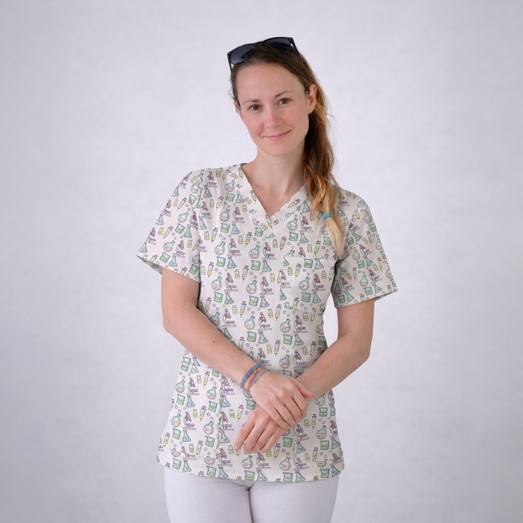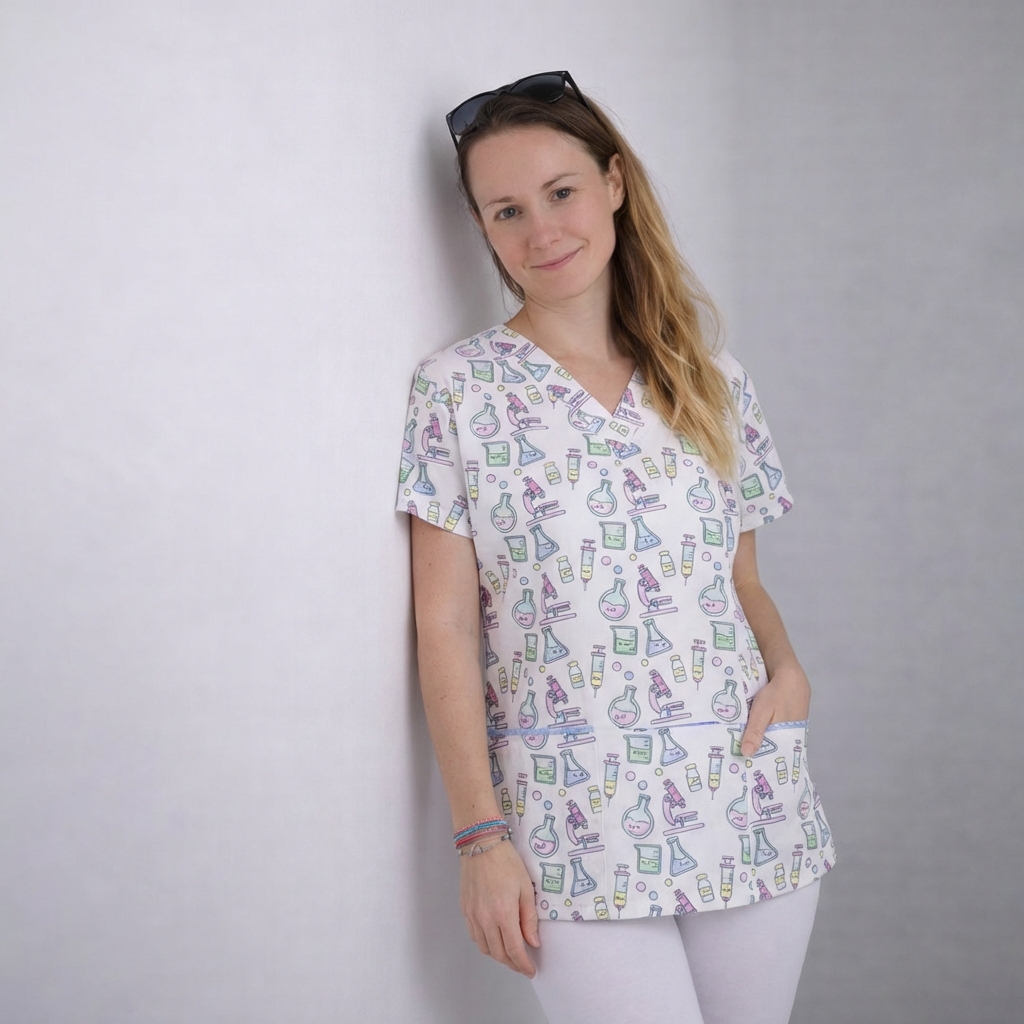Tato zdravotnická halena s motivy ideálními do laboratoře, je skvělou volbou pro ty, kteří chtějí přinést trochu zábavy do pracovního dne.