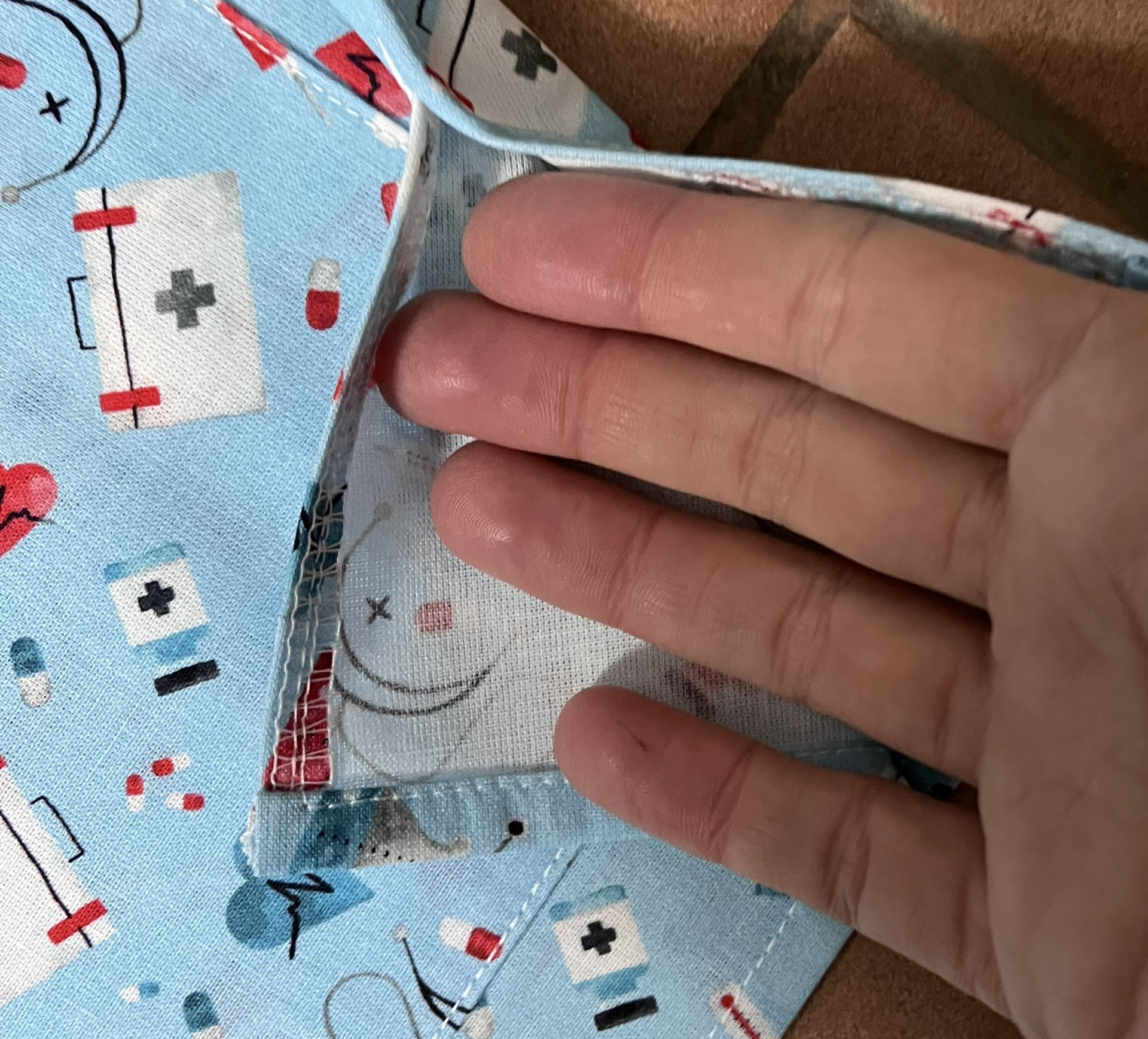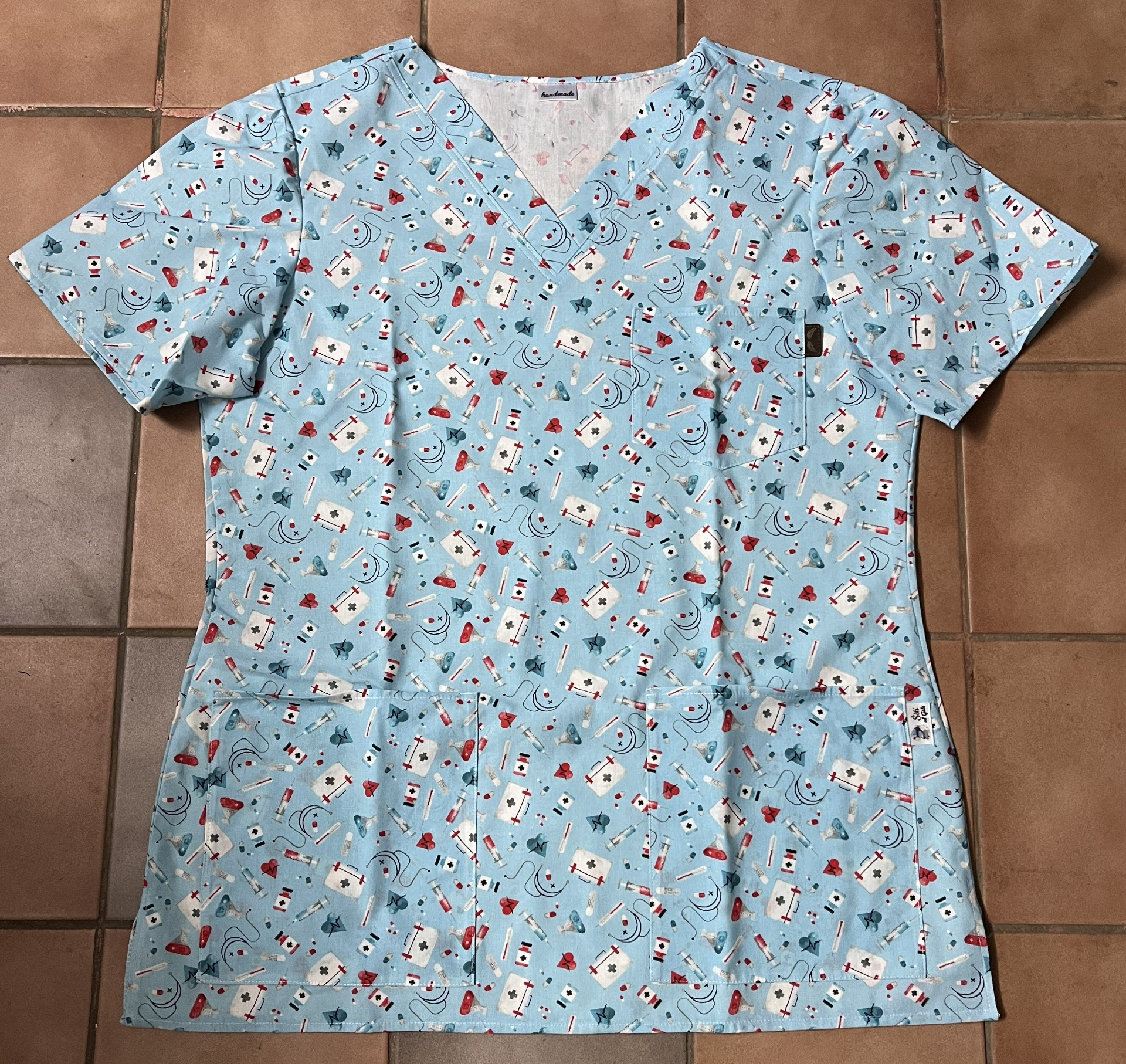 Tato originální halenka v modré barvě s lékařskými motivy je vhodnou volbou pro každou sestřičku či lékařku