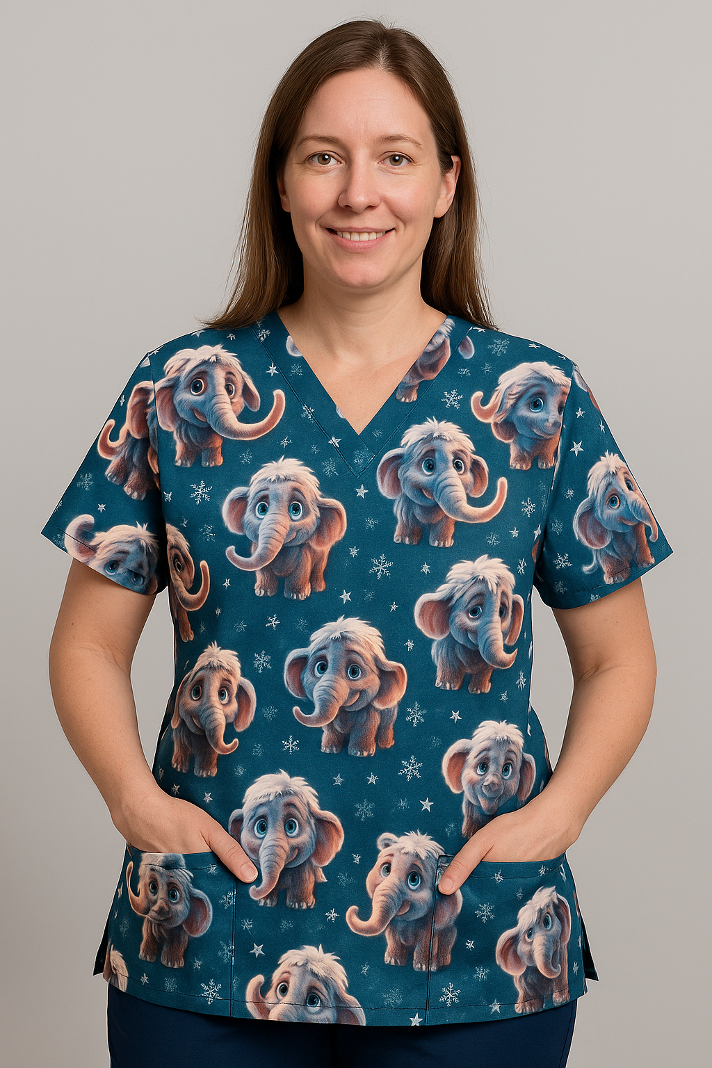 Objevte kouzlo zdravotnické haleny s motivy roztomilých mamutů a přeneste sebe a svoje malé i velké pacienty do dob pravěku se špetkou zimní atmosféry.