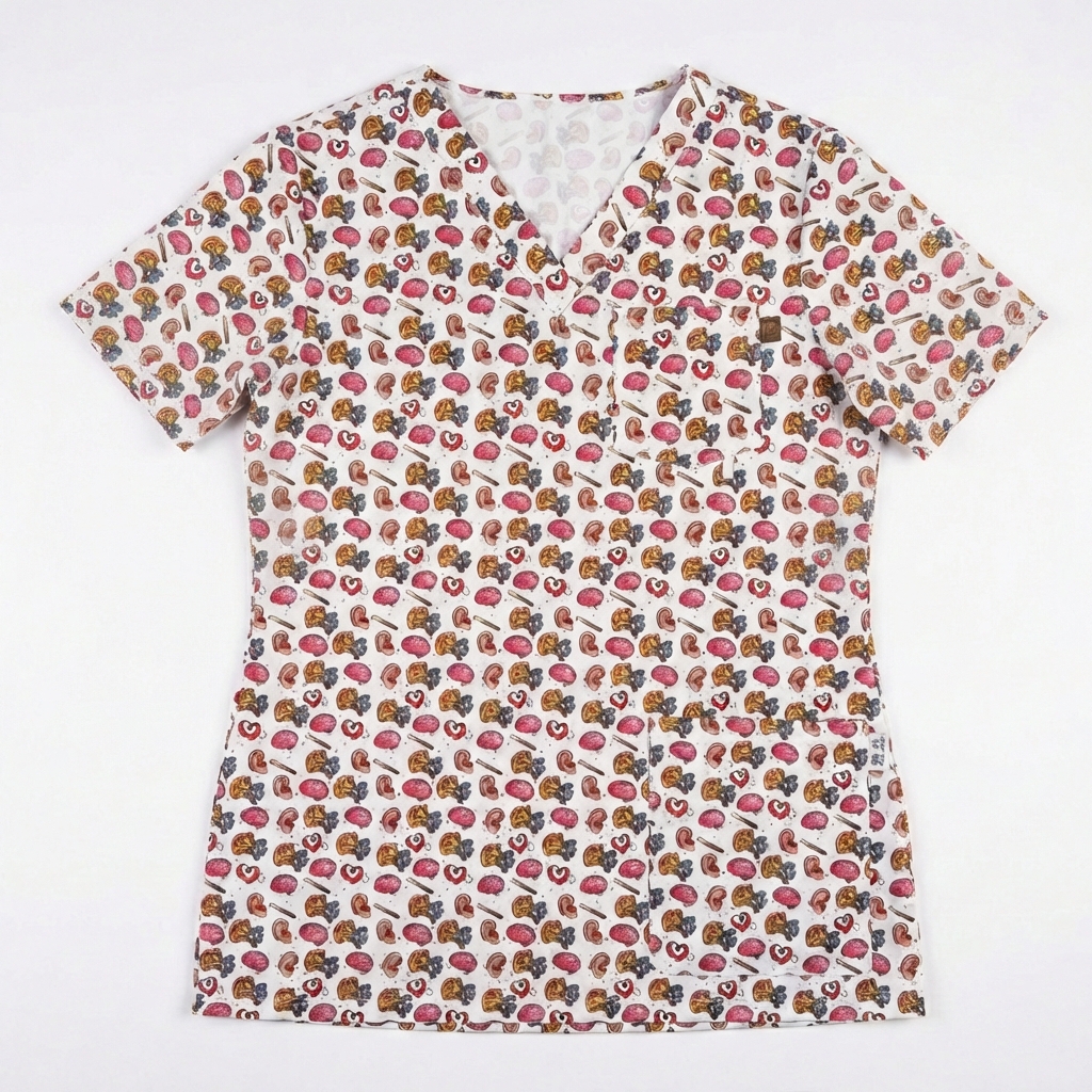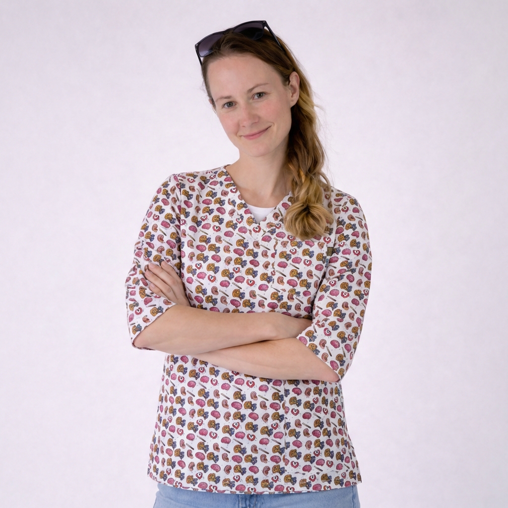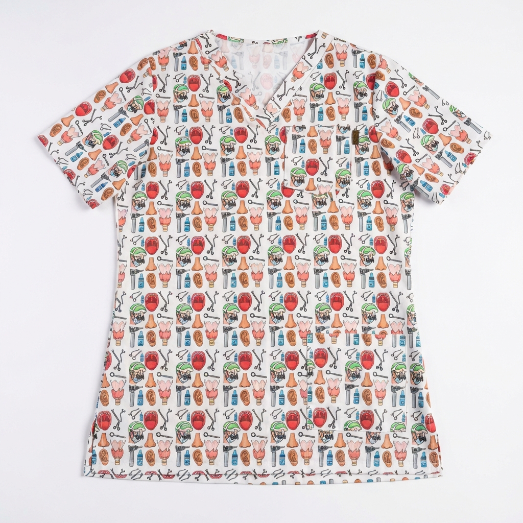 Zdravotnická halenka s různými motivy vhodnými na oddělení ORL
