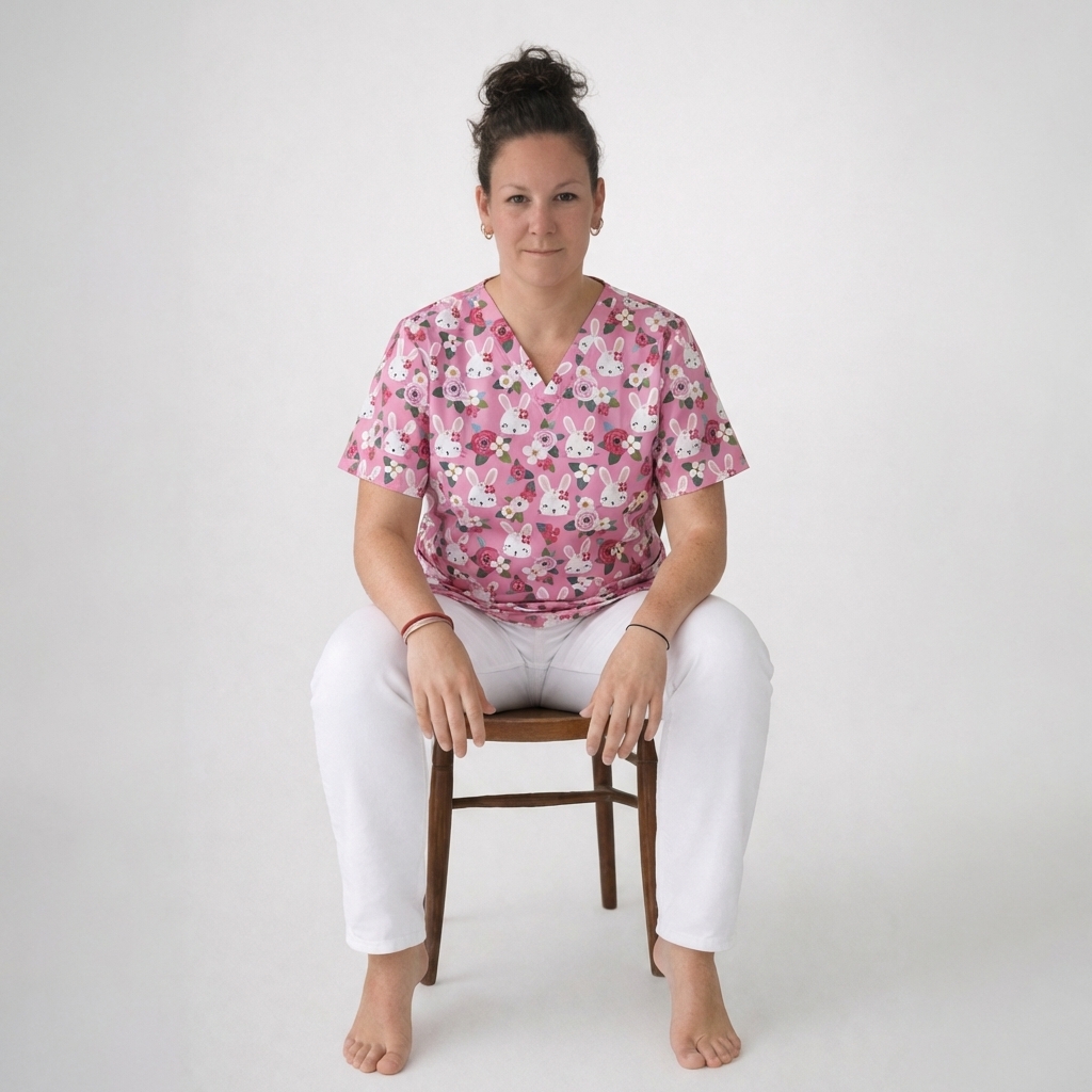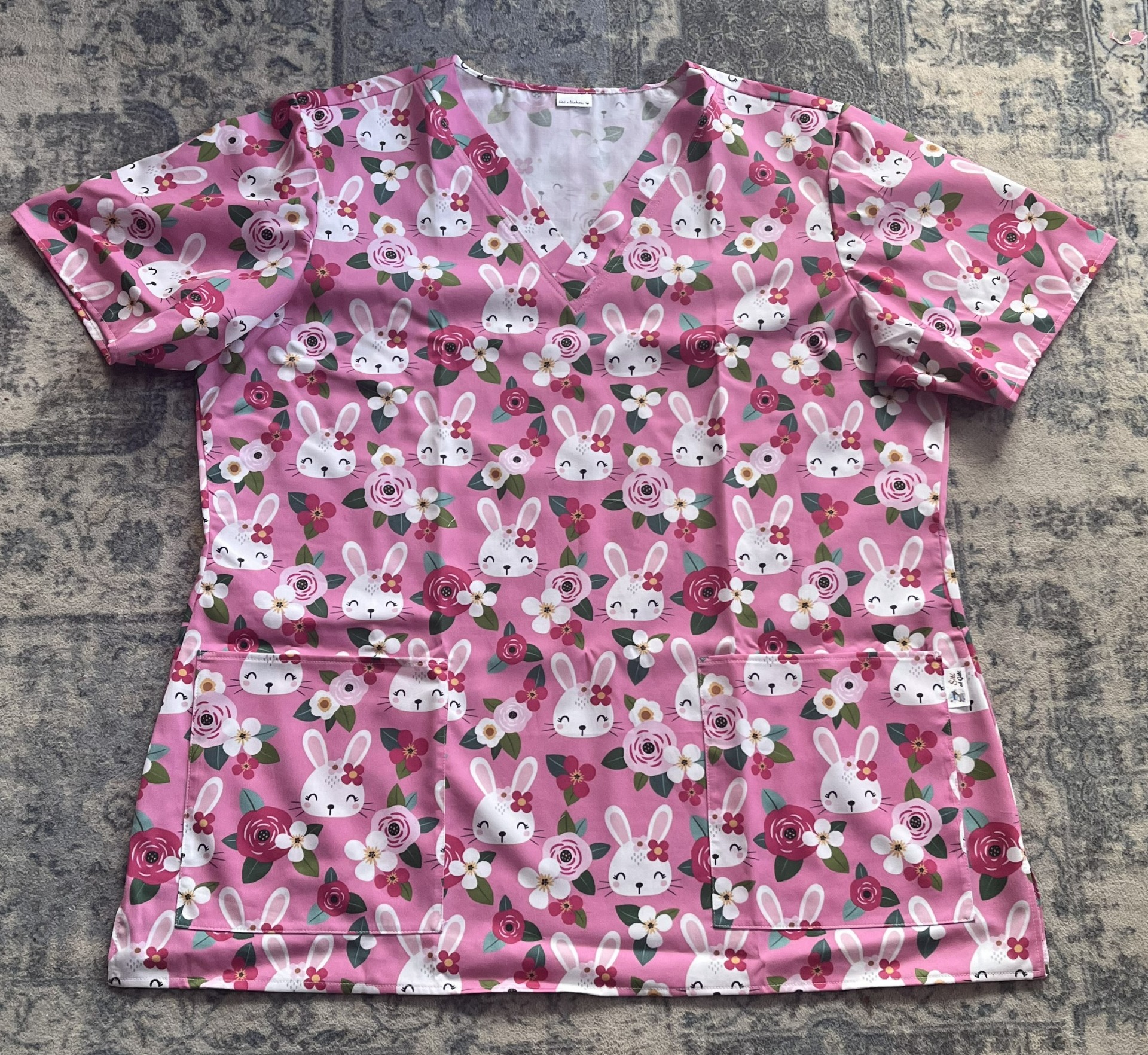 Zdravotnická halena s roztomilými vzory zajíčků ve dvou barvách.
