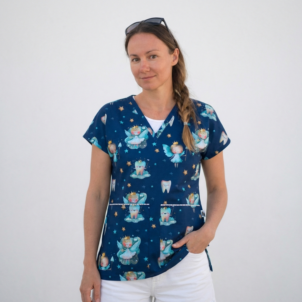 • Krásná halenka s přinechanými rukávy s motivem roztomilých zoubků