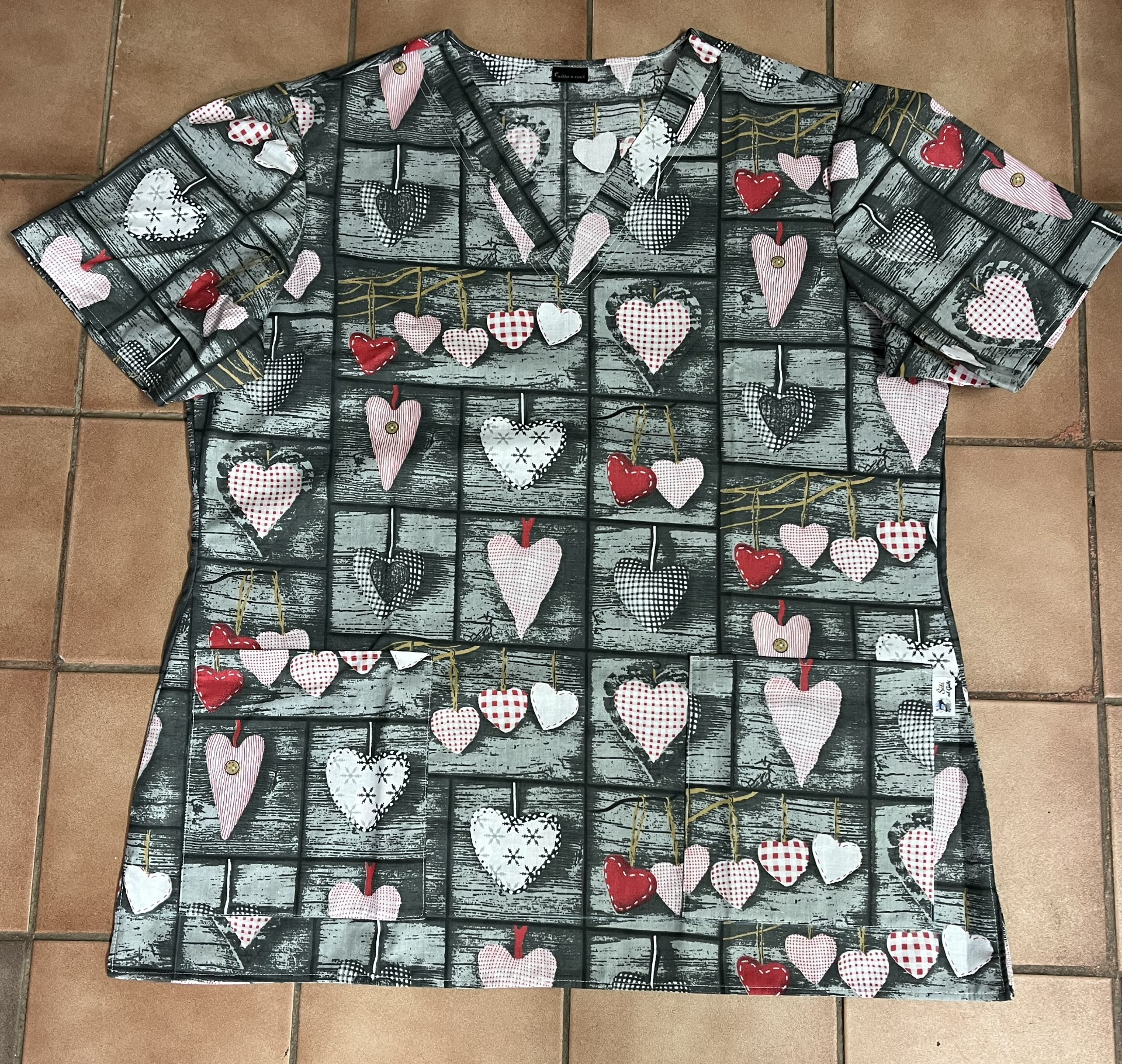Tato zdravotnická halenka s motivem srdíček je ideální pro každého, kdo chce do svého pracovního dne přinést trošku lásky.
