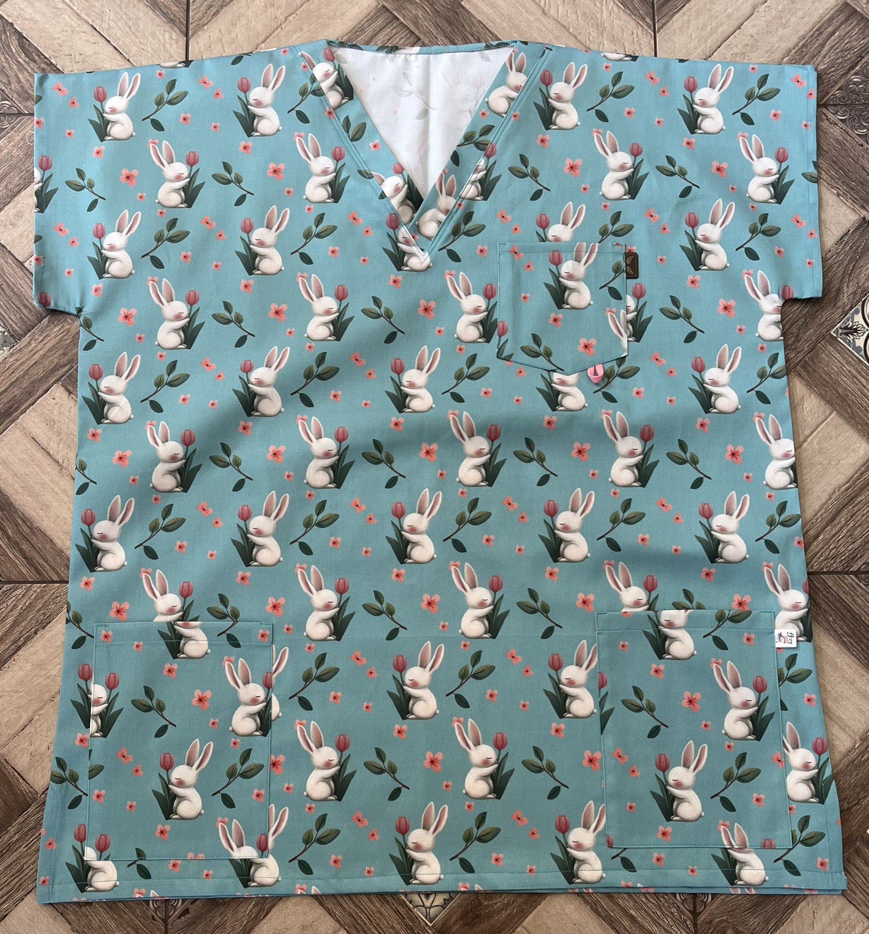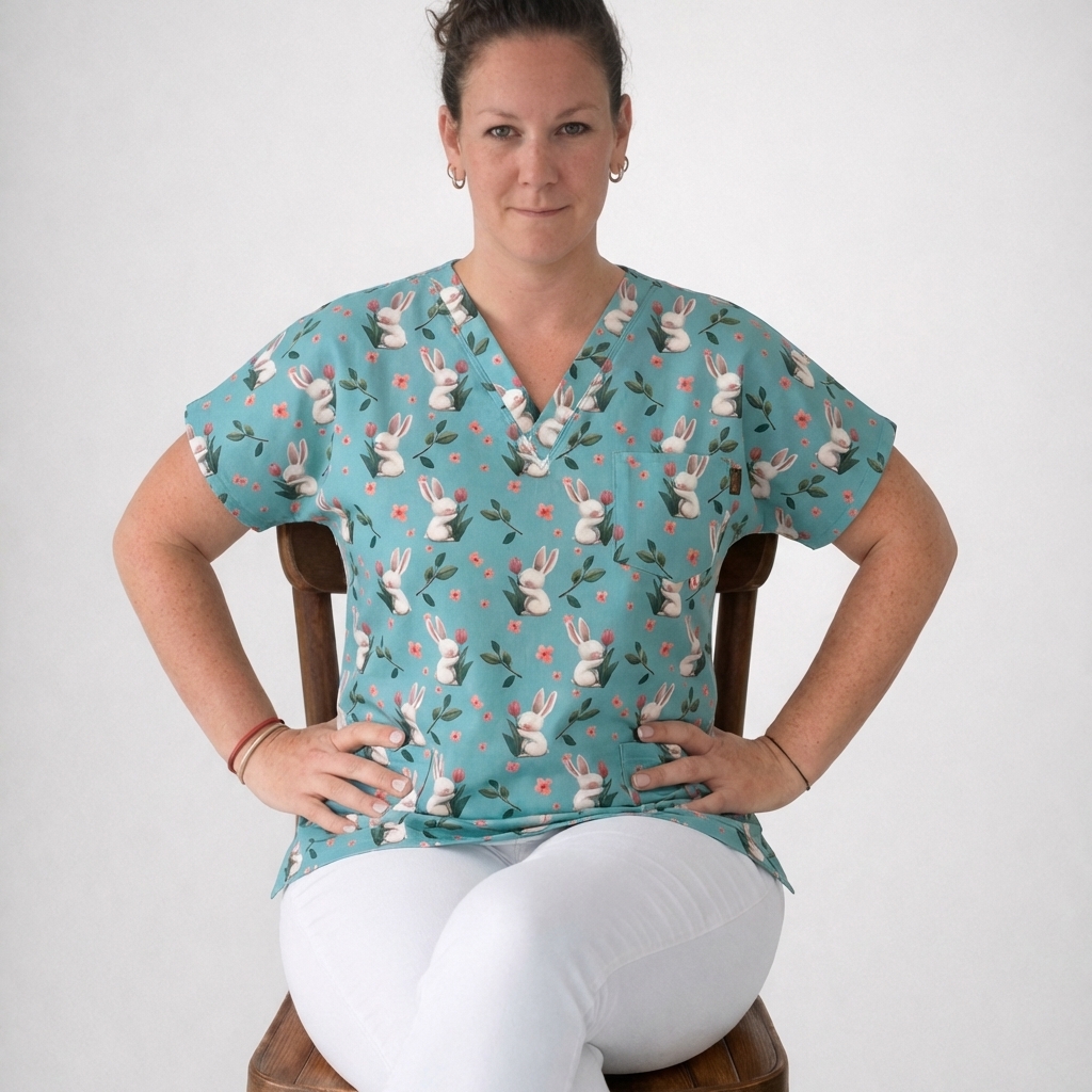 Zdravotnická halena se vzory zajíčků vhodnými pro každou sestřičku, laborantku, doktora či doktorku.